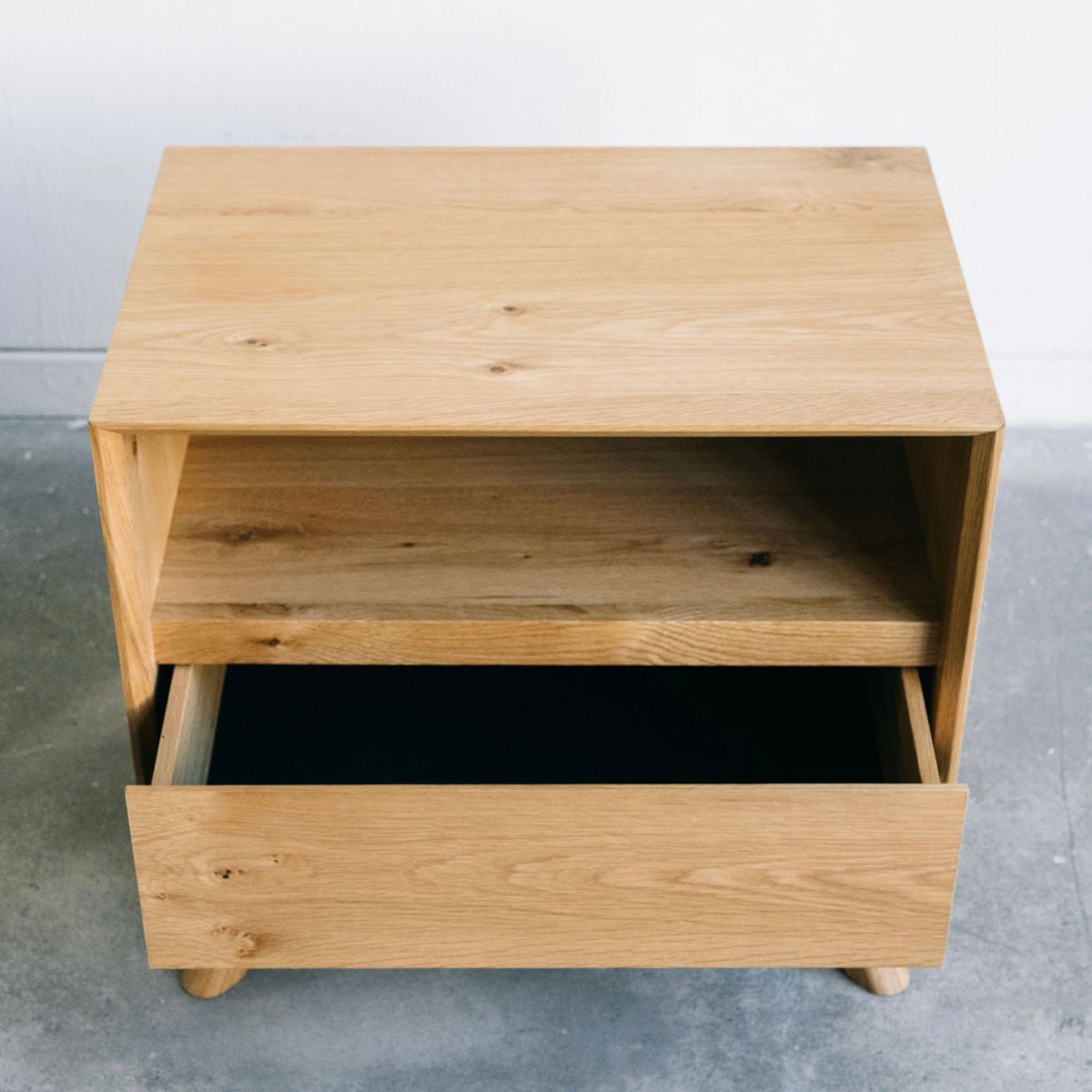 The Mirah Nightstand brings quiet elegance to your bedroom with its clean lines and timeless silhouette. Crafted from solid Slavonian white oak, sourced from the sustainable forests of Croatia and Slovenia, it offers a naturally light tone and fine grain that complements any minimalist or Scandinavian-inspired space.